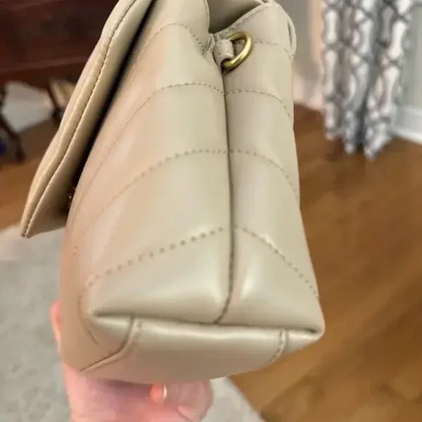 Elevate your style with the Yves Saint Laurent Beige Quilted Leather Shoulder Bag.
