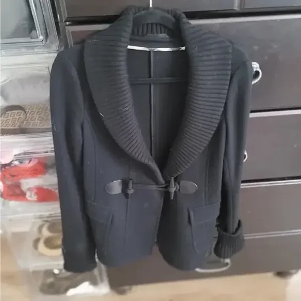 BURBERRY BRIT Toggle Front Black Wool Jacket Coat Knit Shawl 38 EU