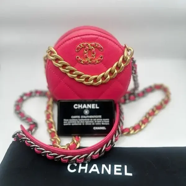 Elevate your style with this chic Chanel pink quilted round crossbody bag.