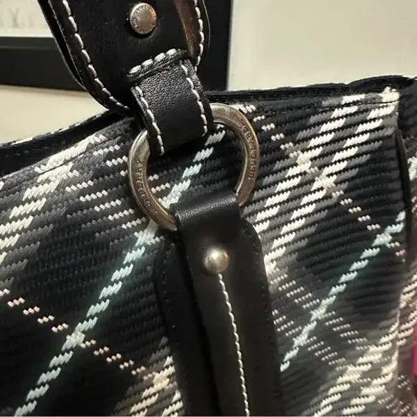 BURBERRY Nova Check Blue Label Tote Bag Canvas Black Auth hk1018