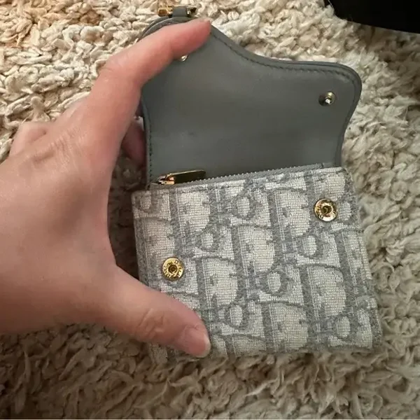This is an authentic CHRISTIAN DIOR Oblique Saddle Lotus Wallet in Grey.
