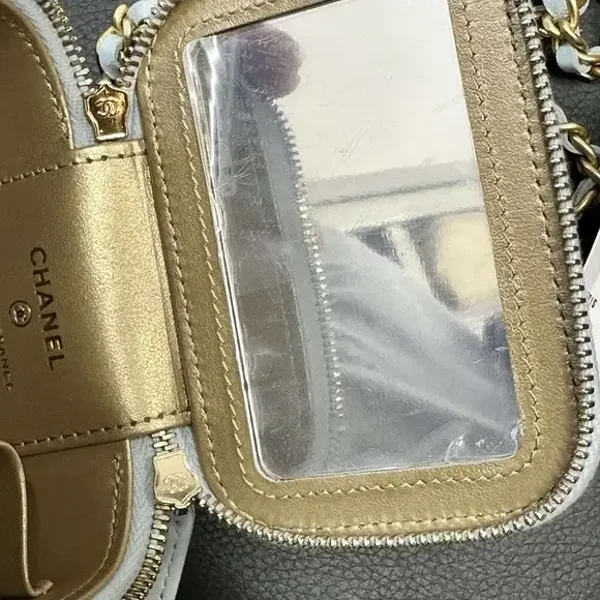 Authentic Chanel Pearl Crush Trendy Mini Vanity Case – Light Blue with Gold Hardware