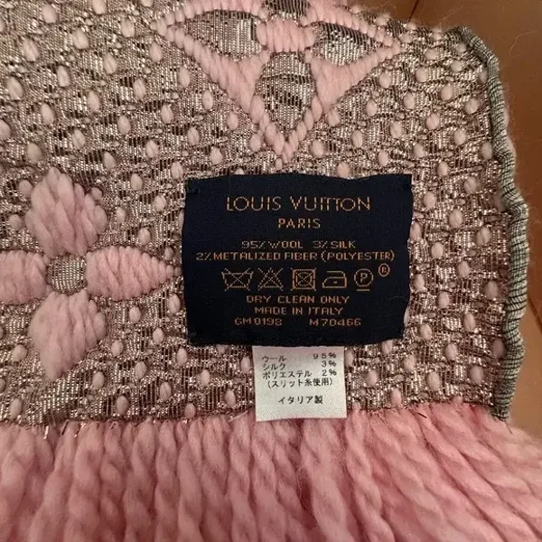 Elegant, feminine, and highly collectible, this authentic Louis Vuitton Logomania scarf features the House’s iconic monogram pattern woven throughout a soft pink knit, beautifully accented with gold metallic threads for a subtle, luxurious shimmer. This colorway is rare and hard to find, making it a standout piece for both collectors and fashion lovers.
