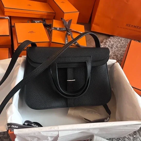 Hermès Halzan 25 Noir Clemence PHW – Stamp 2026 (Brand New Full Set)
