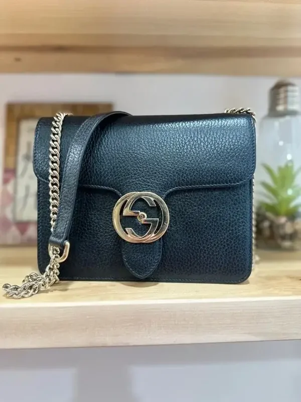 ✨ Gucci Dollar Calfskin Interlocking G Shoulder Bag – Black | Classic & Timeless ✨